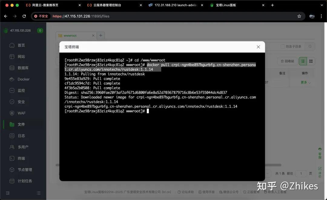 先使用docker命令拉取镜像,这里我把rustdesk的镜像放到了我的 阿里云容器镜像服务arc,国内服务器直接拉取 docker hub上的 rustdesk/rustdesk-server 镜像 容易超时报错。