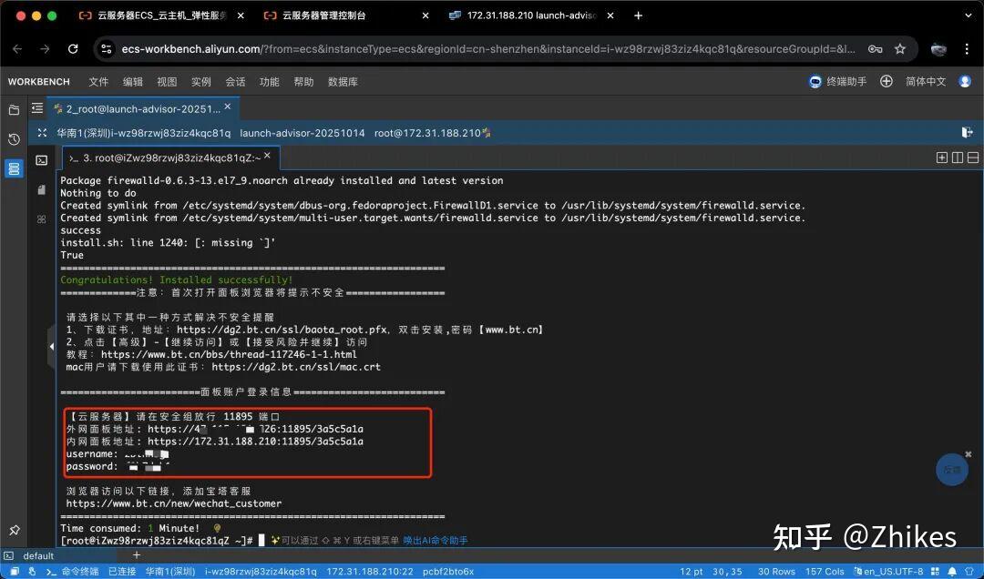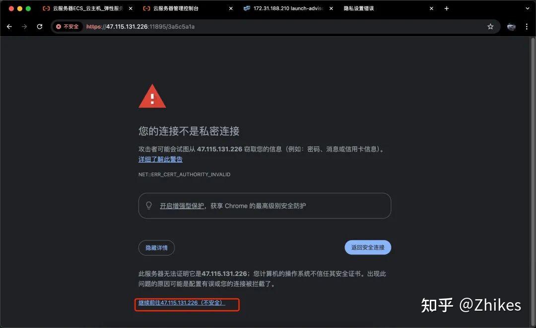 先去服务器安全组放行 11895 端口,你的可能不一样,视你的输出信息而定。