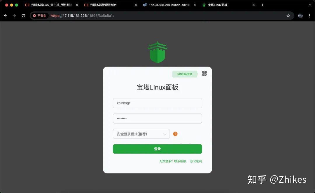 输入上面获取的面板登录 账号 username,密码 password,登录宝塔面板