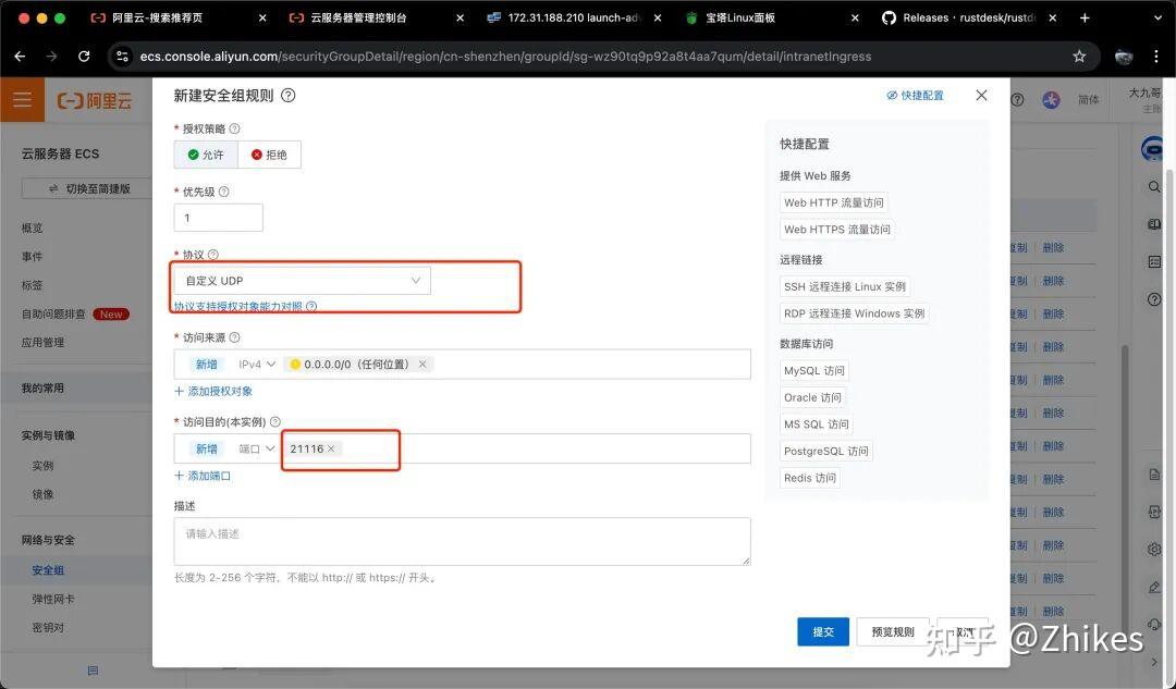 再去服务器放开端口,TCP开放21115~21119端口,UDP开放21116端口