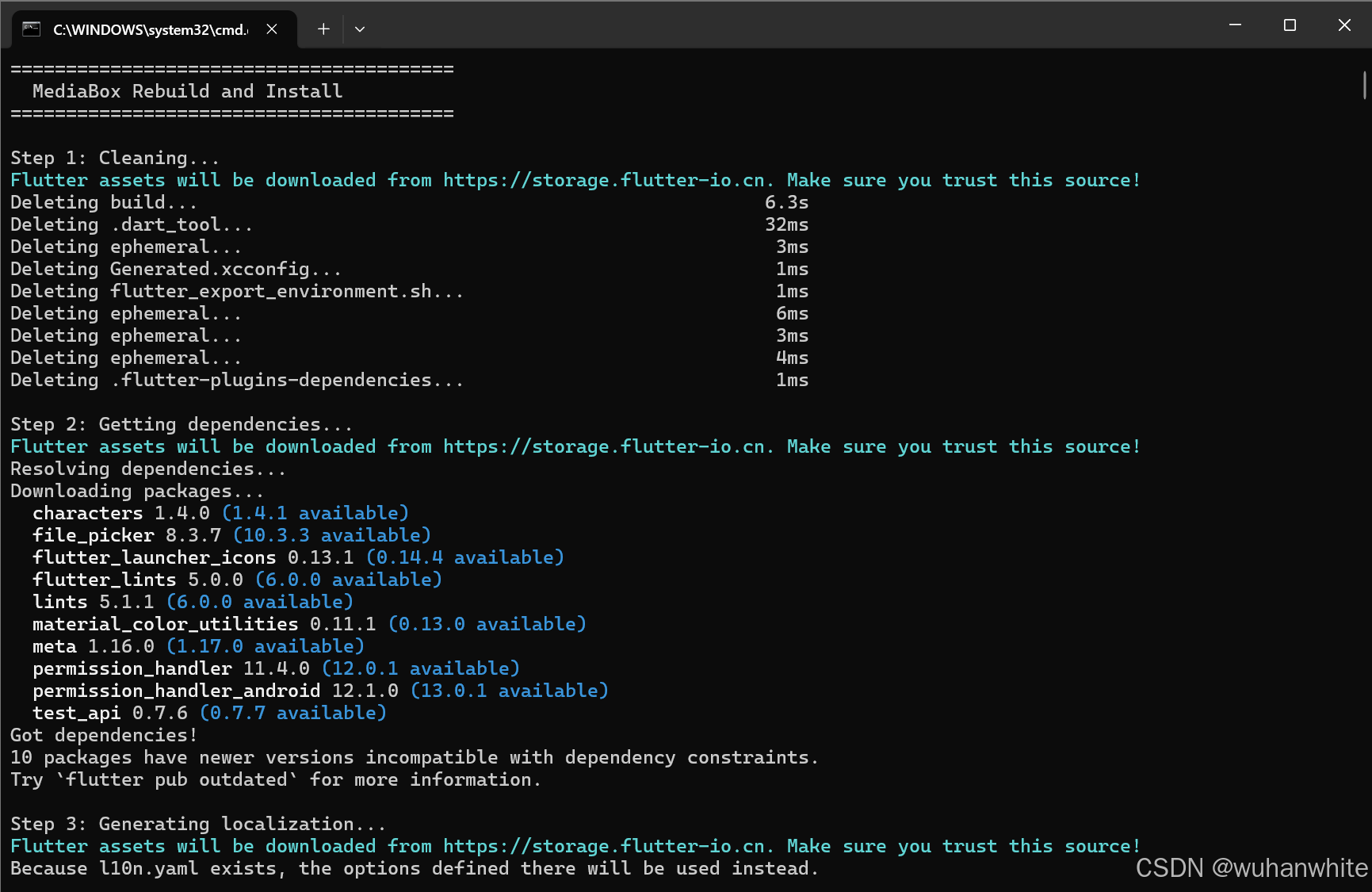 用这个脚本打包并运行,能立刻看到 logcat 里的报错,确认是 MissingPluginException