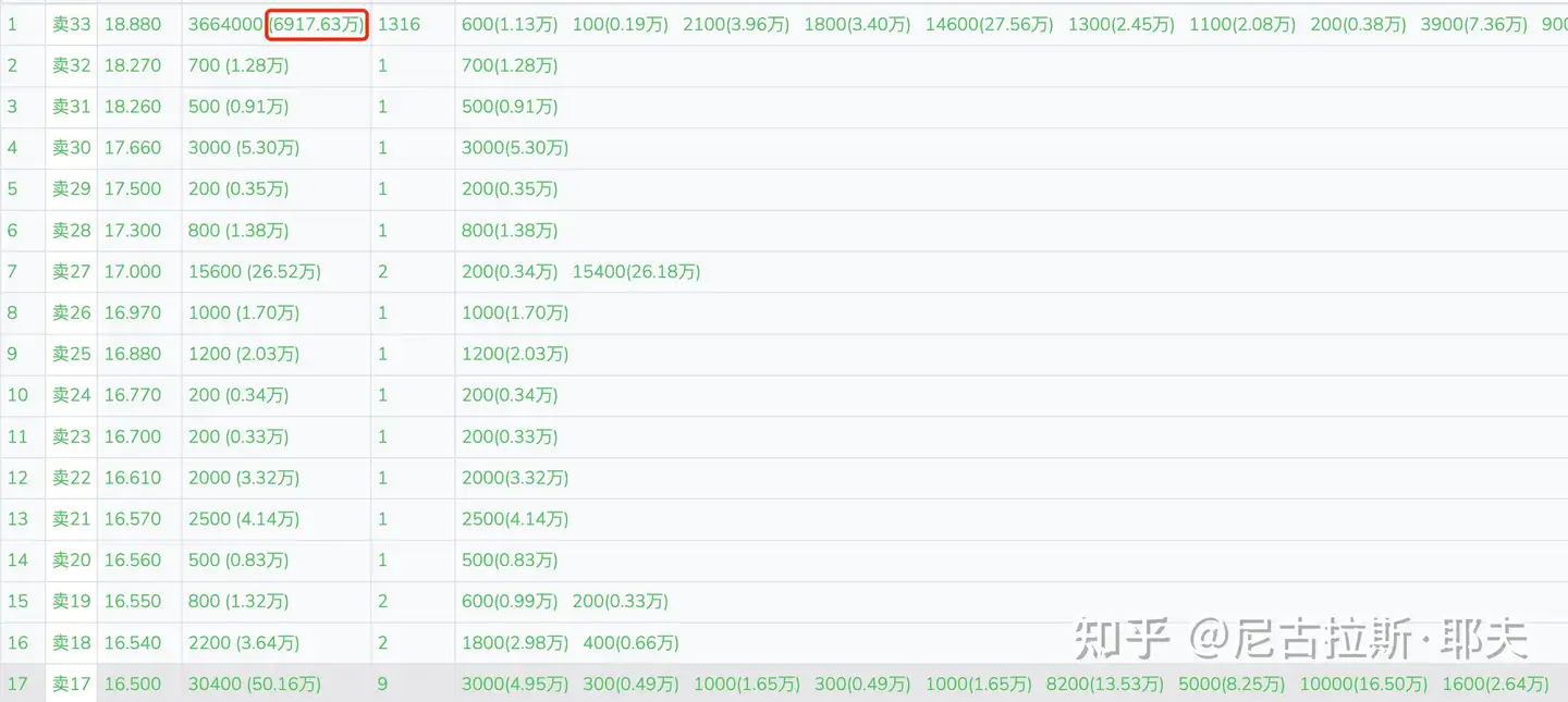 小盘股在对倒期间为了避免击穿股价,通常会在盘口高位挂出大单来设定对倒的价格区间。(金额通常在百万至千万级别)
