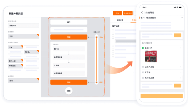 快消aPaaS即是将PaaS平台的基础组件组装成快消行业需要的各种业务场景,具有可视化、灵活配置、低代码等特性。如SFA拜访管理设计器、适配访销订单场景的快消订货设计器以及TPM活动类型设计器等,通过简单拖拽即可创建出完全符合特定需求的操作界面,满足“千企千面,一企百变”的业务需求,极大地提升了业务管理的效率和灵活性。