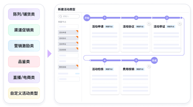 1+N+M+b架构,支撑了渠道链路的多种业务场景,例如:①经销商管理是品牌商连接与洞察经销商的窗口,让品牌商能够更直观地了解经销商的运营状况和需求。②采销协同:上下游交易的无缝连接,提高交易效率,降低交易成本。③拜访检核:上游对下游访店的检查与指导,提升终端销售的执行力和效果。④费用直投:费用真实性的有效保障等等。
