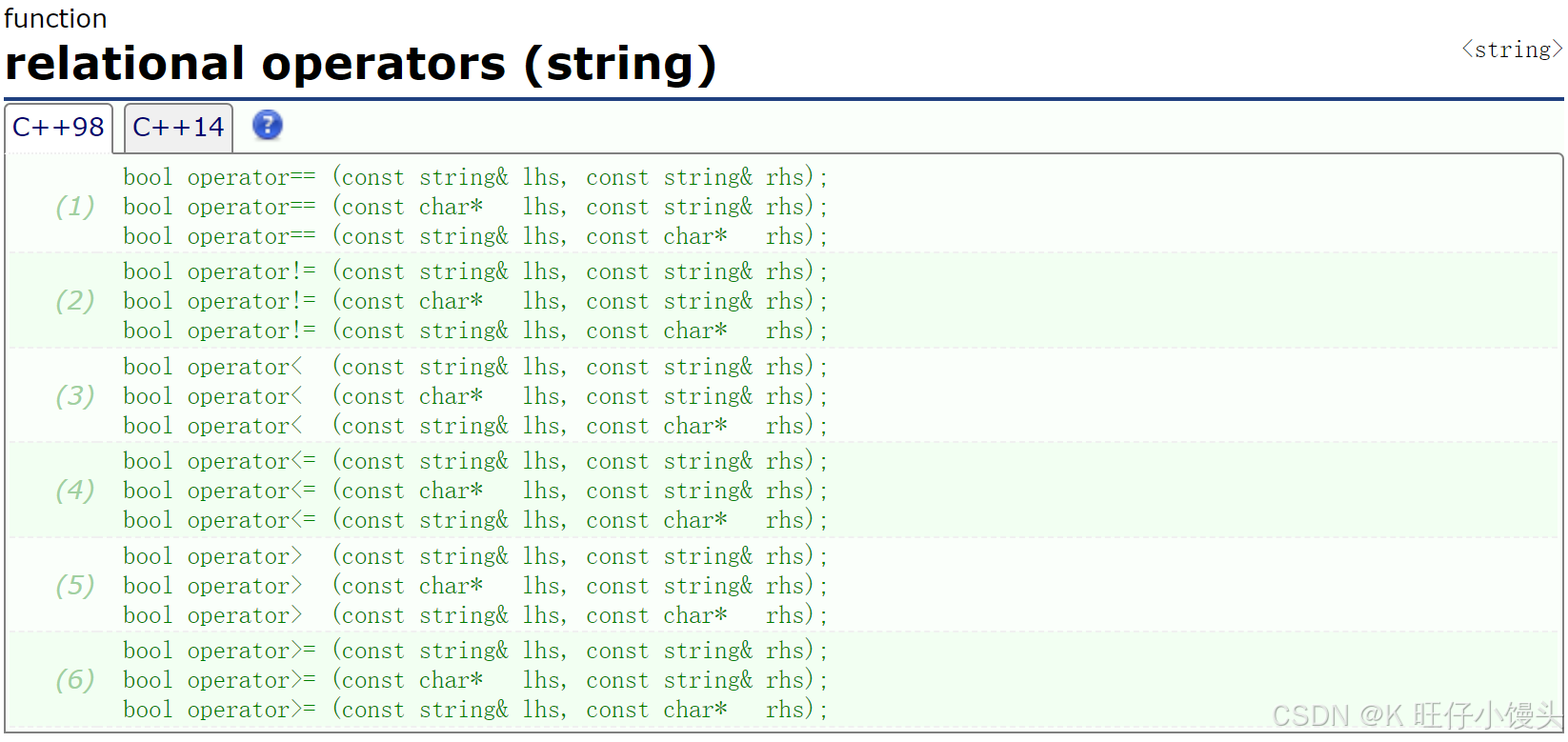 比较大小也是一样的,是按ASCII来比较的,没有重载为成员函数,重载成了非成员函数(重载成了全局的)