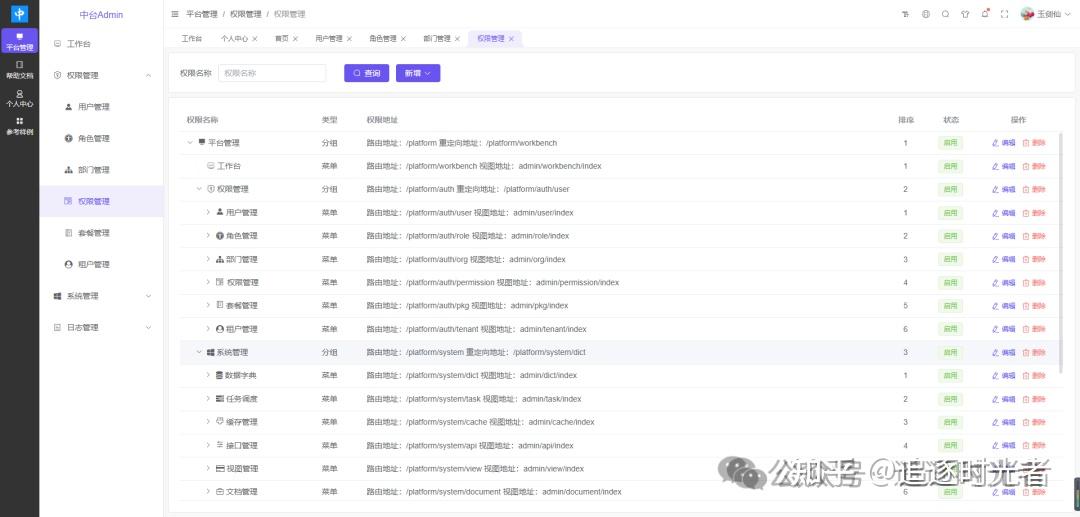 中台Admin(Admin.Core)是前后端分离权限管理系统,前端 UI 基于Vue3开发,后端 Api 基于.NET 8.0开发。支持多租户、接口权限、数据权限、动态 Api、任务调度、OSS 文件上传、滑块拼图验证、国内外主流数据库自由切换和动态高级查询。集成统一认证授权、事件总线、数据验证、分布式雪花Id、分布式缓存、分布式事务、IP 限流、性能分析、集成测试、健康检查、接口文档等。