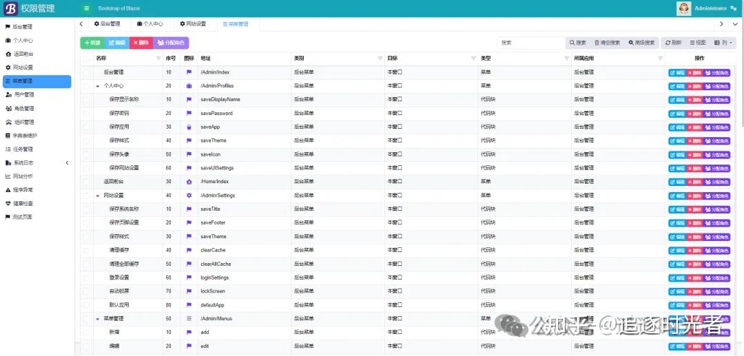 BootstrapAdmin是一个基于Bootstrap Blazor开源的.NET通用后台权限管理系统,后台管理页面兼容所有主流浏览器,完全响应式布局(支持电脑、平板、手机等所有主流设备),可切换至 Blazor 多 Tabs 模式,权限控制细化到网页内任意元素(按钮、表格、文本框等等)