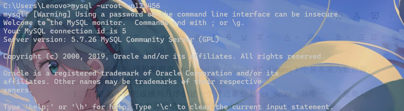 mysql -uroot -p123456先进入数据库