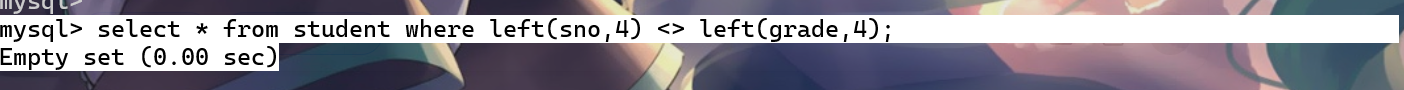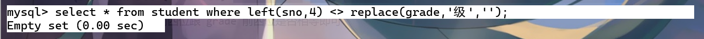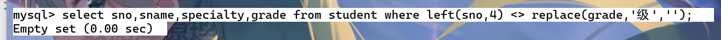 还可以使用select * from student where left(sno,4) <> replace(grade,'级','');