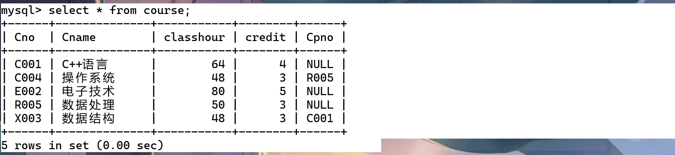8.用到course表 先查询一下course表的所以数据跟列名