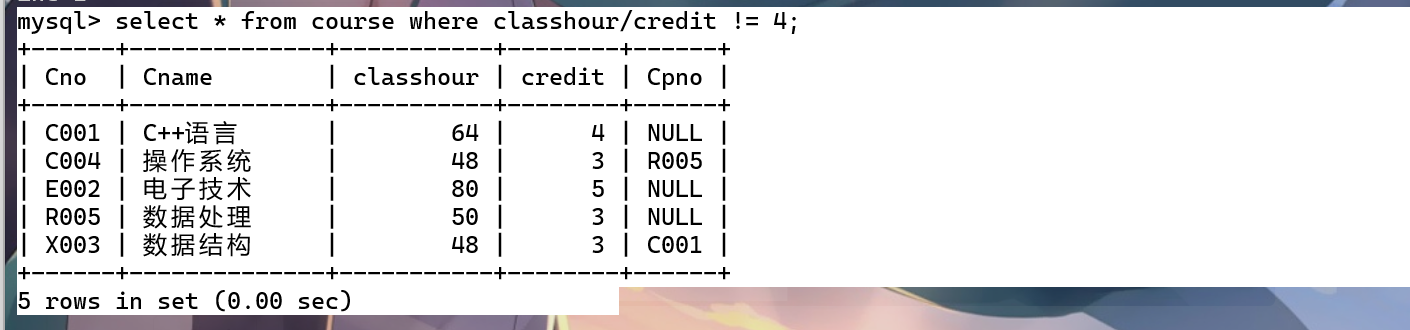 select * from course where classhour/credit != 4;