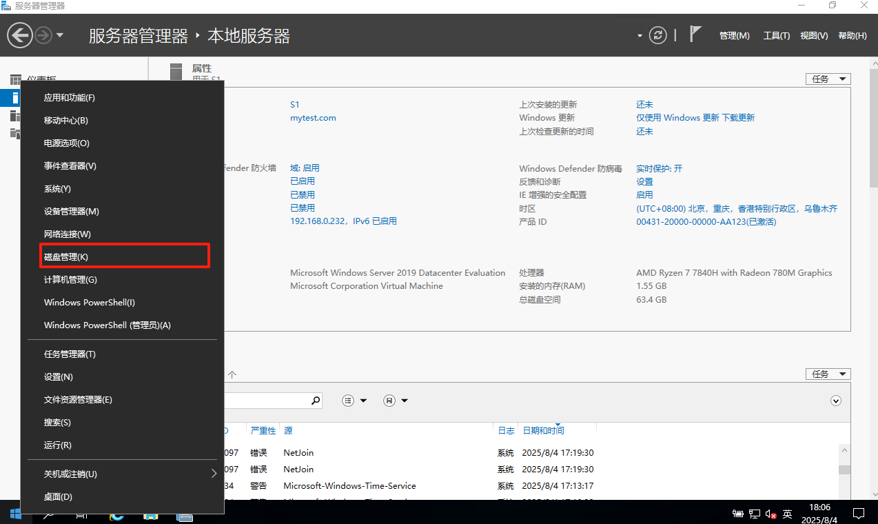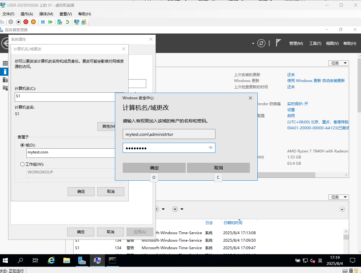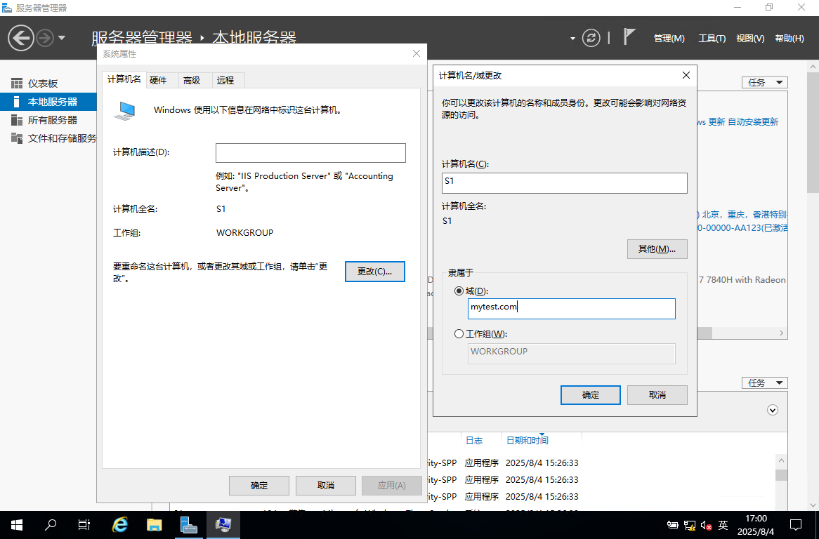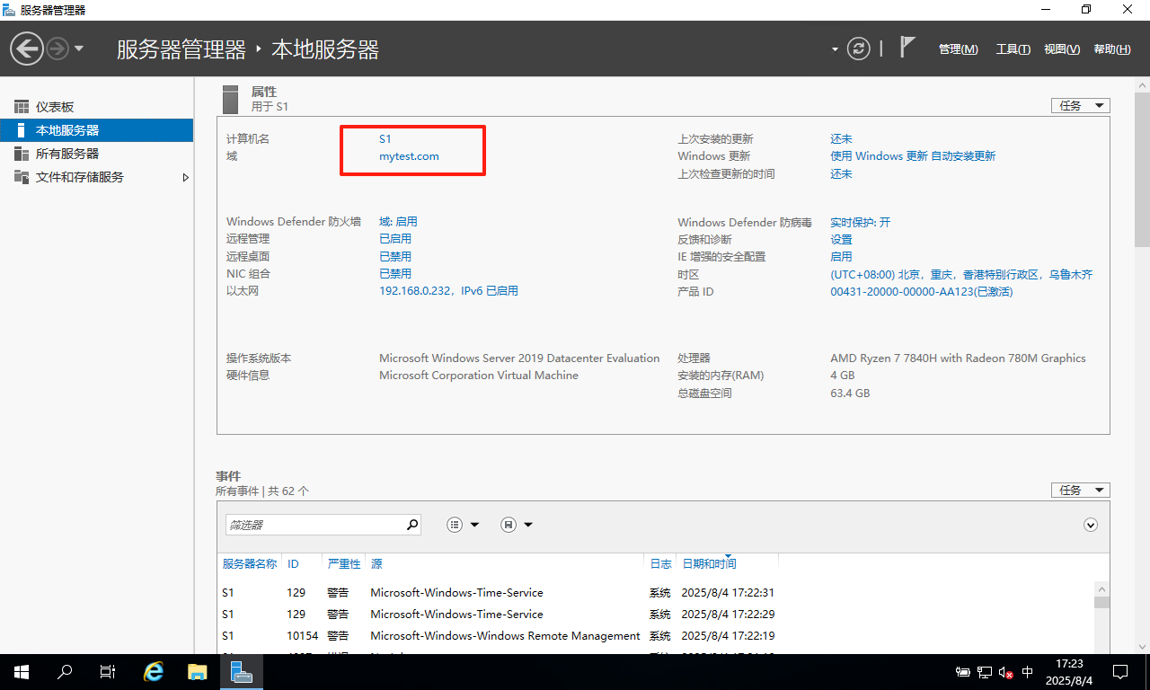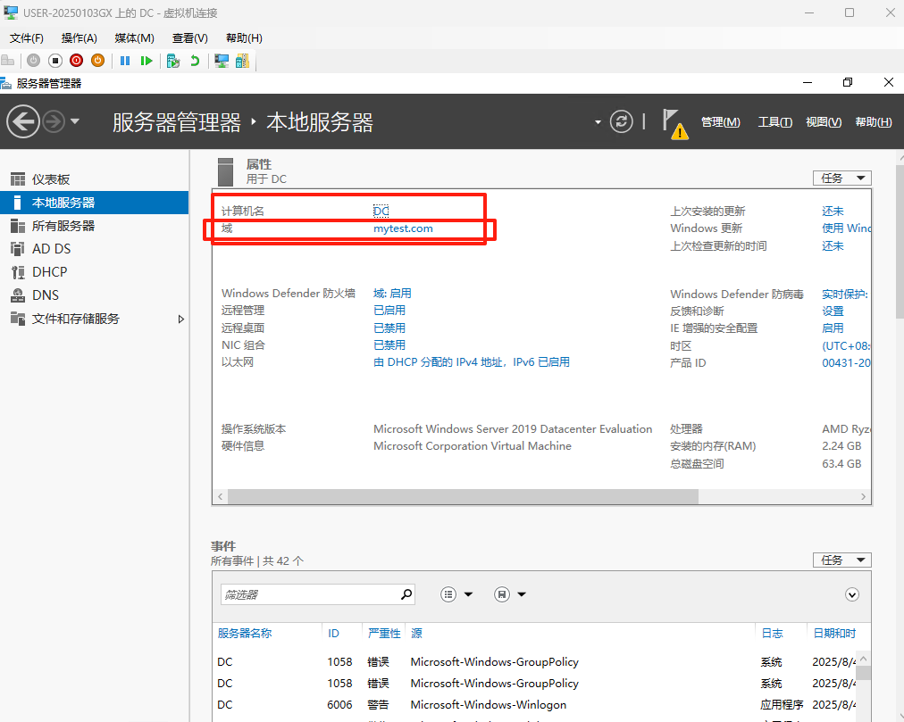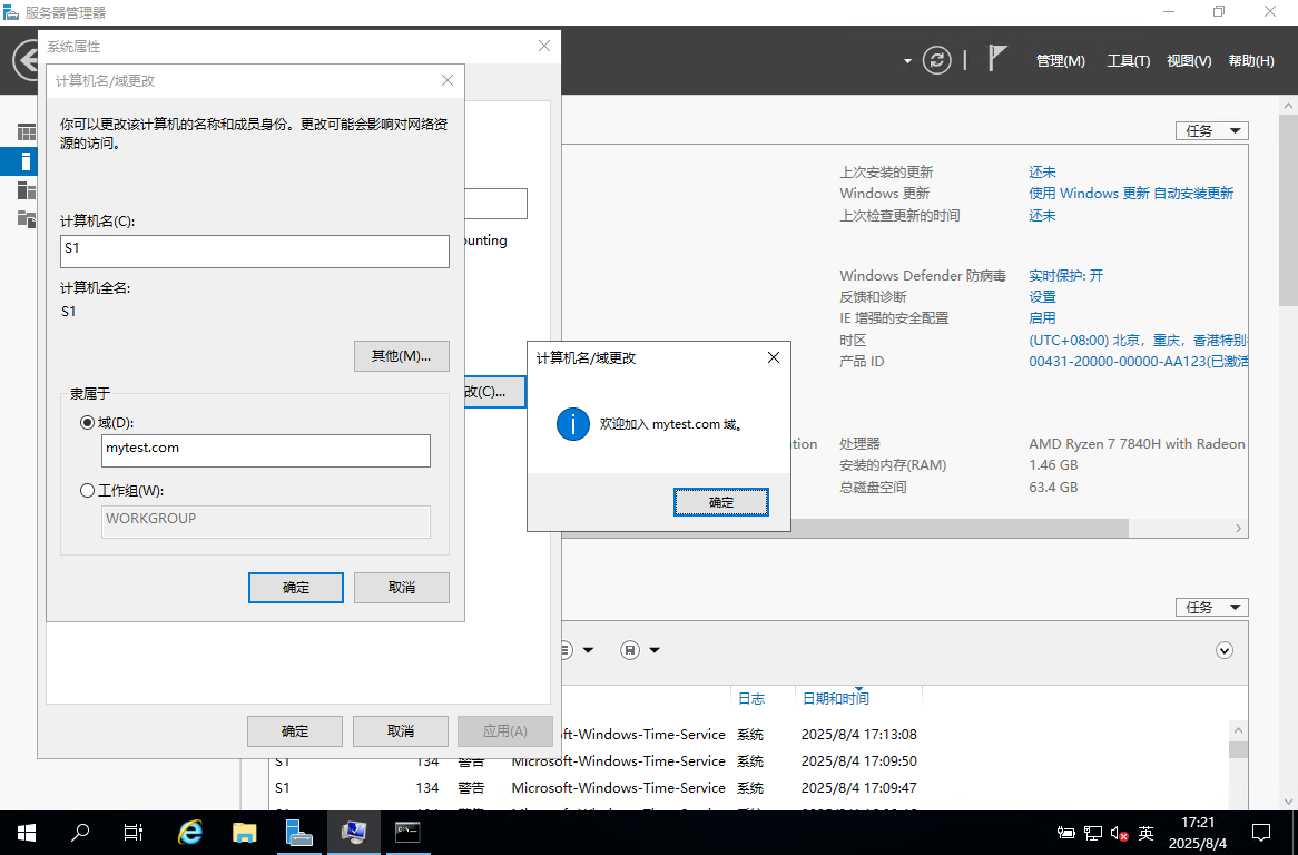 此时我们用mytest\administrator+密码登录域账户能够查看到计算机已经属于mytest域了