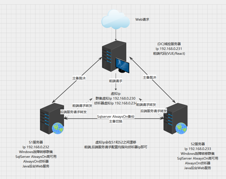 注意:(DC)域控服务器负责对Sql主备服务器进行投票裁决, DC服务器宕机之后会出现主备切换失败的现象