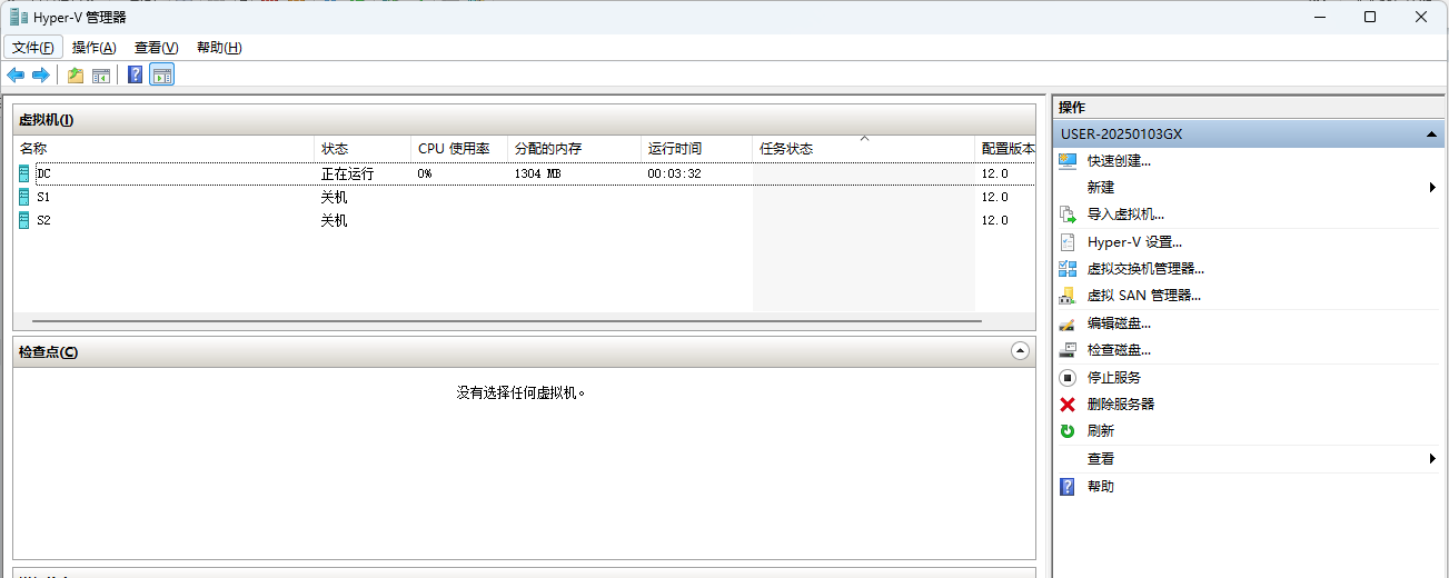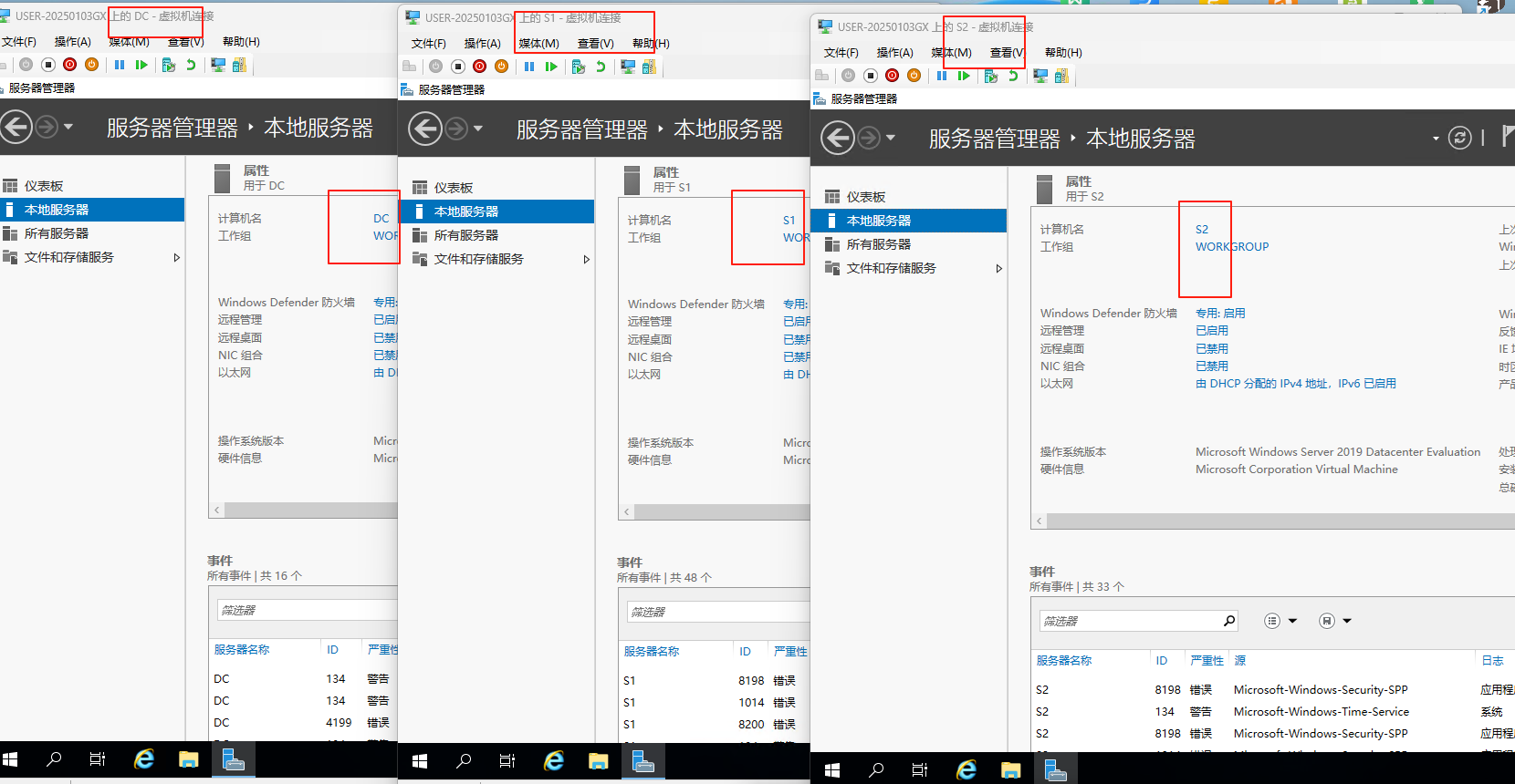 需要准备三台服务器,我用三台虚拟机替代,这里三台虚拟机分别命名为DC/S1/S2.