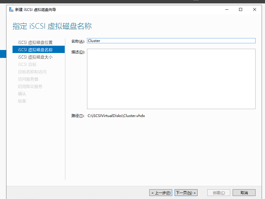 自定义磁盘名称,下一步,输入磁盘大小,下一步