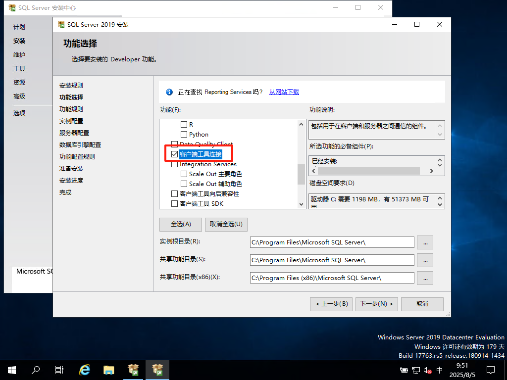 此处我的数据库版本选择了Sql Server 2019 Develeper版本.