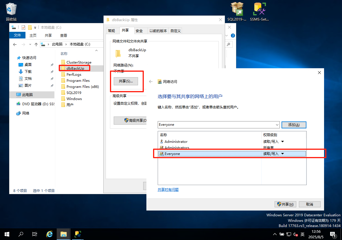 在S1服务器创建共享目录,这里是C:\dbBackup