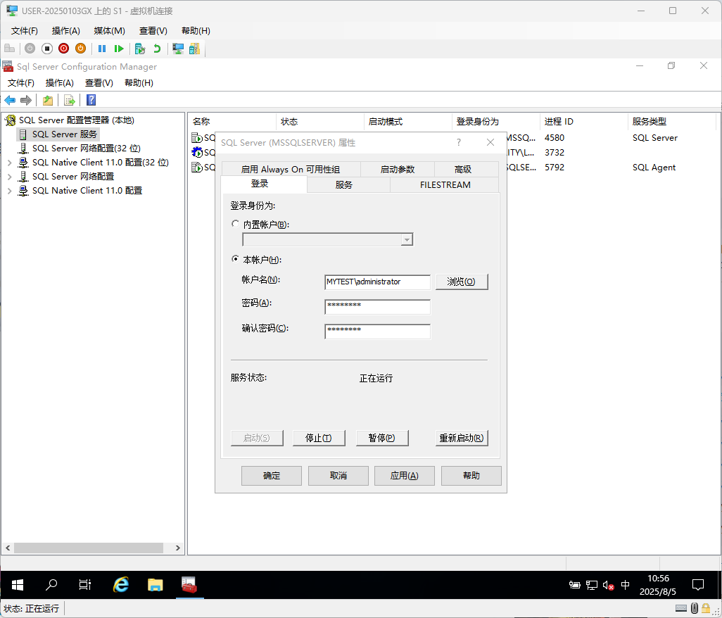 并将Sql服务实例登录身份设置为域账Administrator账户