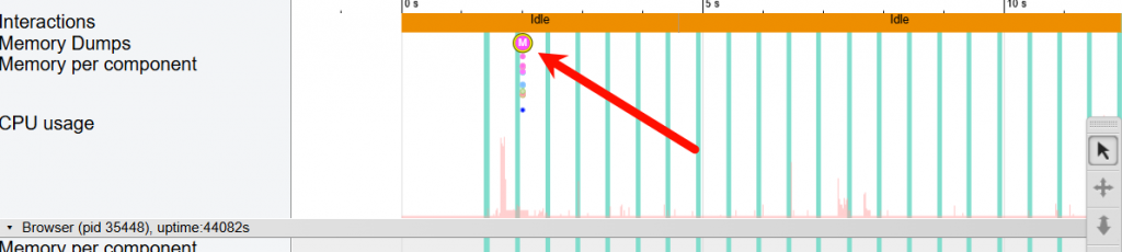 - 录制结束后,点击键盘的 M 键查看具体的内存快照