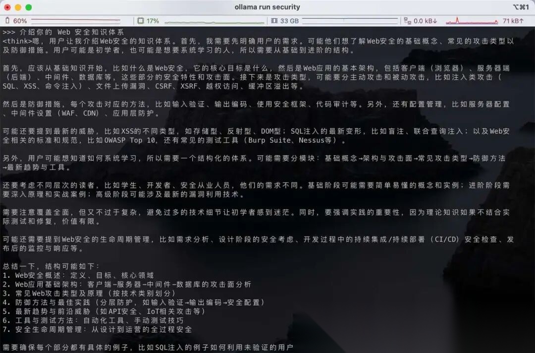 • 在 Web 安全整体的知识体系上,具备推理能力,并且回答结果更丰富,说明模型能够系统性整合 Web 安全领域的知识框架,形成结构化的知识输出体系,同时具备跨知识点的关联推理能力,可基于底层逻辑对复杂知识体系进行演绎构建;