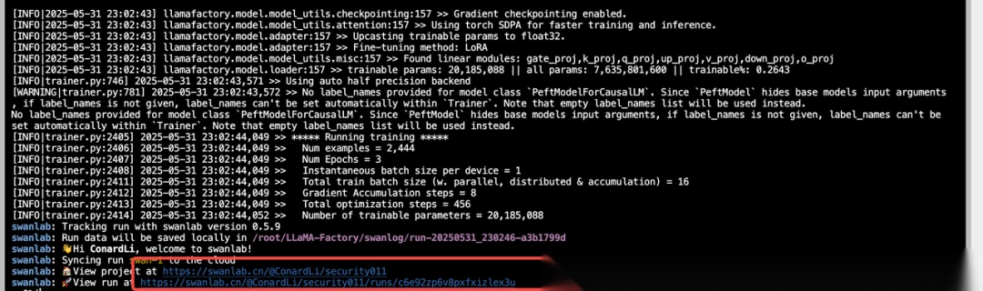 进入后,我们可以看到微调过程中的详细日志: