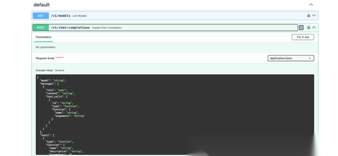 我们通过 http://localhost:6006/docs 可以访问部署后的 API 接口文档(可以看到是符合 OPEN AI 格式的):