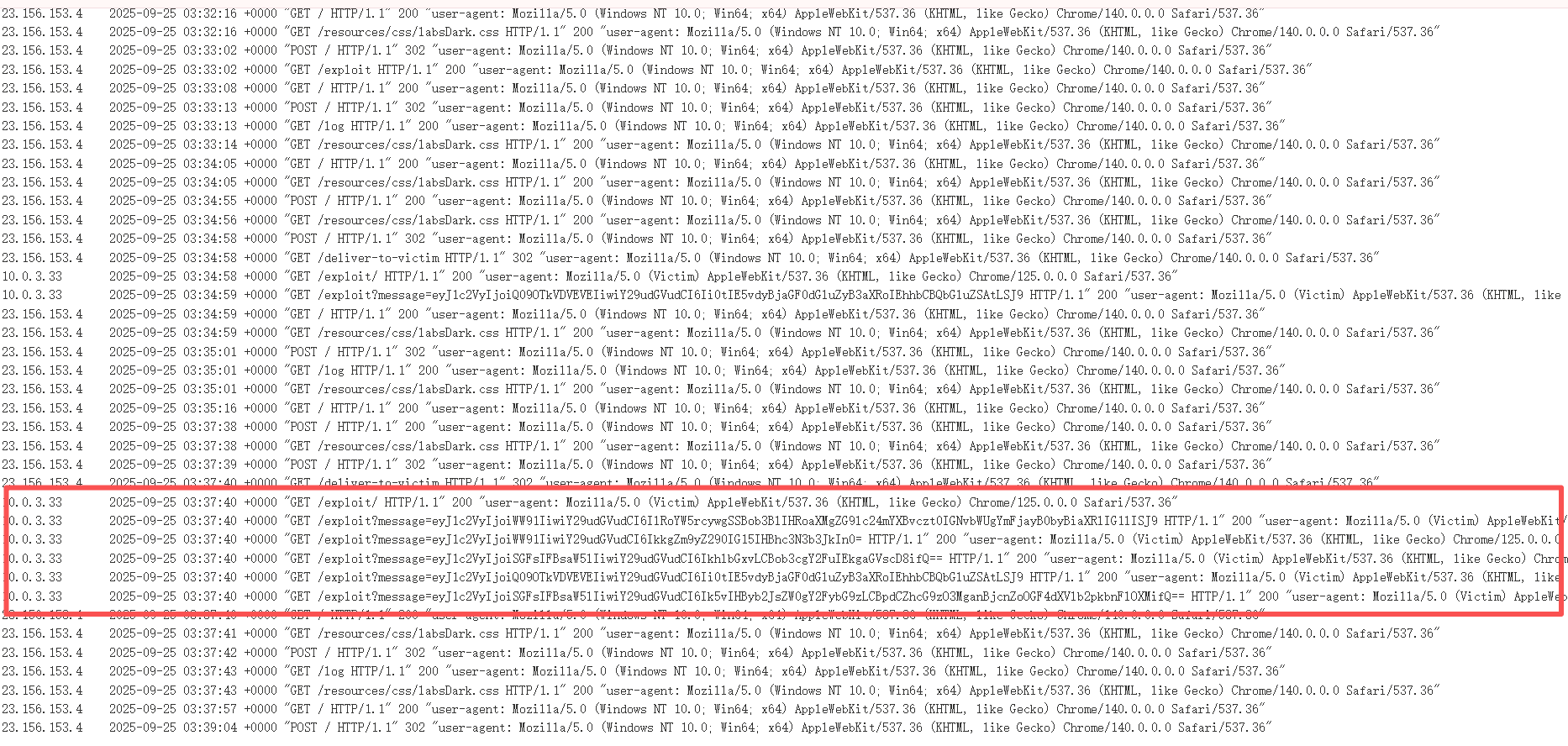 PS:这里为了方便我没有使用 Burp Collaborator,而是直接使用了本题提供的服务器,然后在日志查看交互