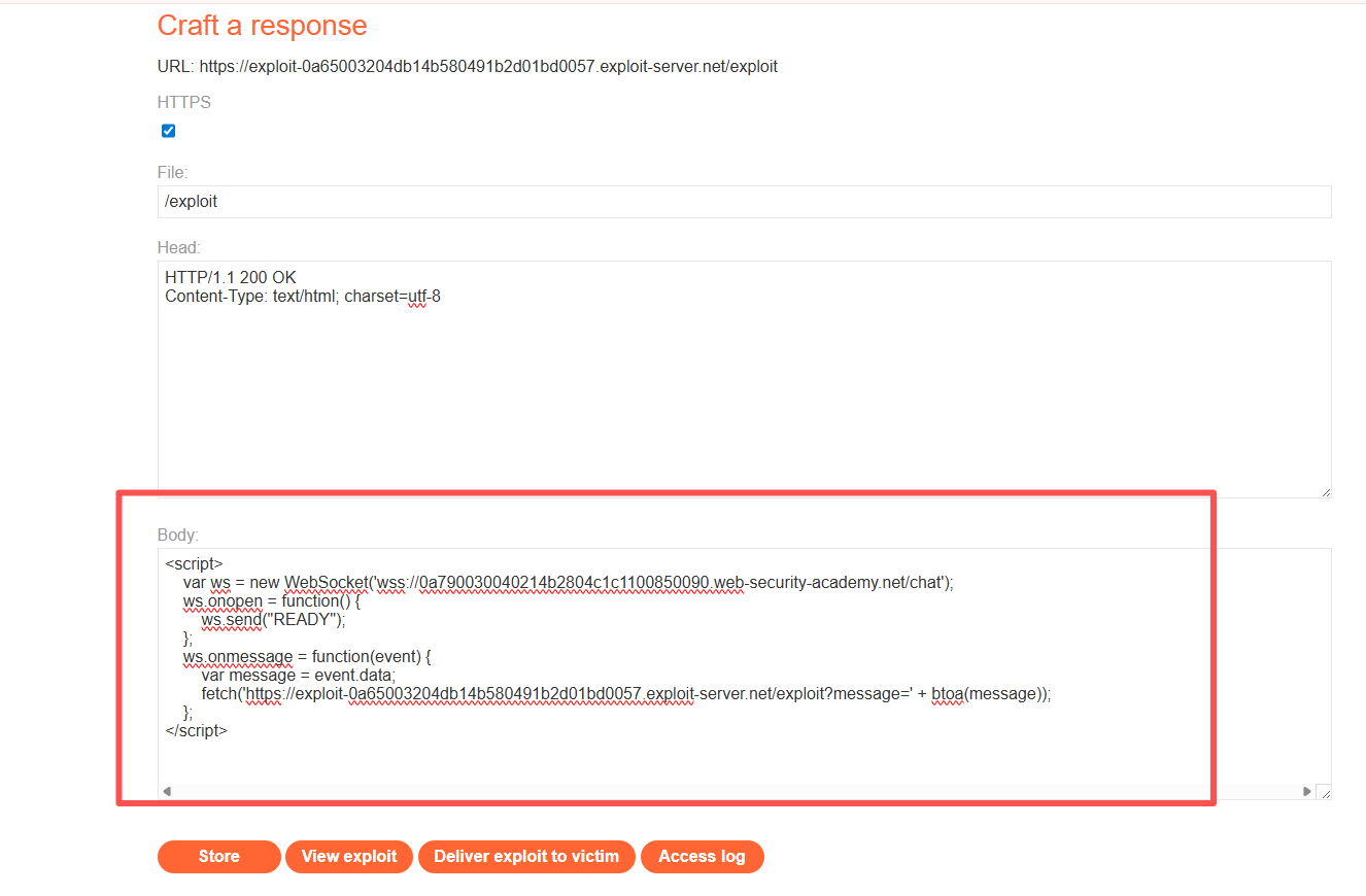 接下来验证一下 CSWSH ,在靶场提供的服务器构造 CSWSH 脚本。
