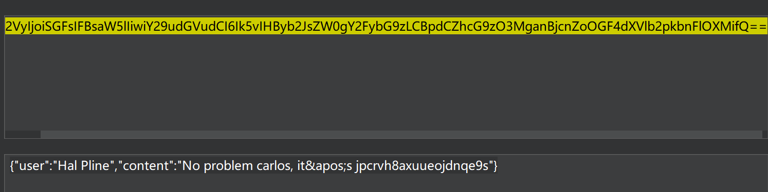 发现返回了所有聊天记录,将几条记录逐条解码,找到包含用户名和密码的记录