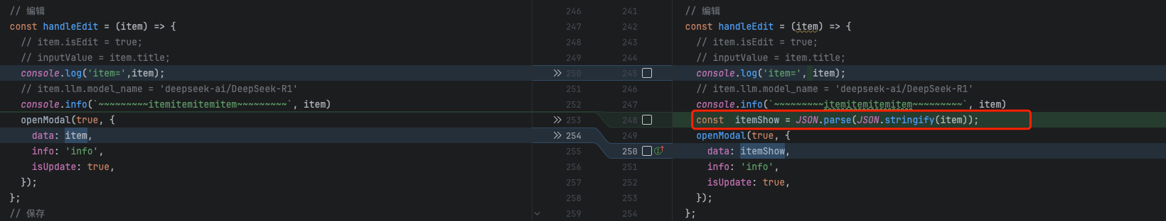 const itemShow = JSON.parse(JSON.stringify(item));// JSON序列化方法 深拷贝
