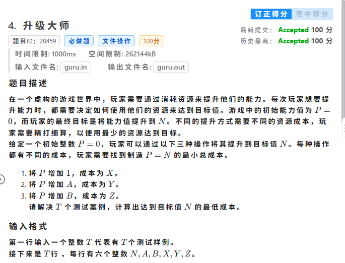 接着第四题,看上去是个贪心或背包、搜索,但是数据量有一点点大,所以我就用枚举+优化写了一个代码提交了
