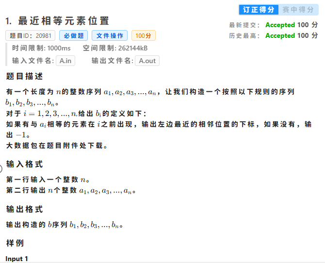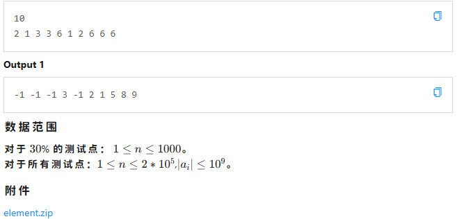 枚举每一个数字,看看他前面有没有相同元素,有则输出下标,否则-1