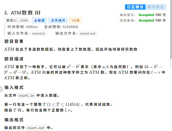 | ATM数数 Ⅲ | 数学、等差数列 | 100 | 100 |