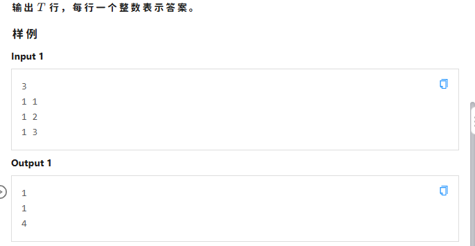 {freopen("count.in", "r", stdin);freopen("count.out", "w", stdout);int _;cin >> _;while (_--){solve();}return 0;