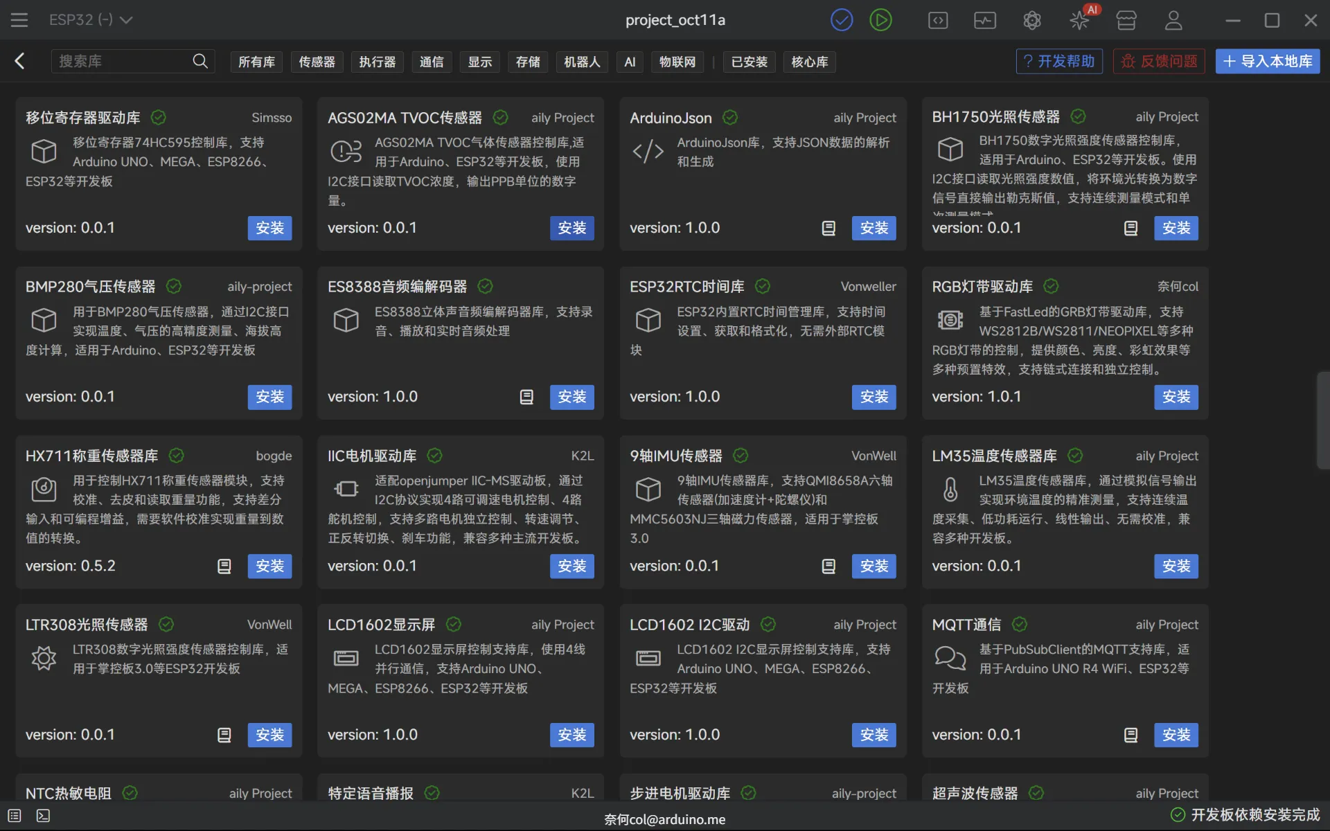 工程化项目管理 使用npm进行项目管理,做到以项目为单位进行开发板和库的管理。解决了诸多传统嵌入式开发环境的工程化不足的问题。如,使用Arduino IDE可能出现board package、库和当前项目不匹配,造成编译失败,运行错误的问题。在本软件上,各项目中的开发板版本和库版本是独立的,项目间互不影响。