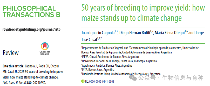 分享一篇来自布宜诺斯艾利斯大学今年发表的综述文章《50 years of breeding to improve yield: how maize stands up to climate change》,该文回顾了过去50年玉米育种在提高产量方面的成就,分析了这些改良如何帮助玉米适应气候变化,并探讨了未来育种面临的挑战和目标。