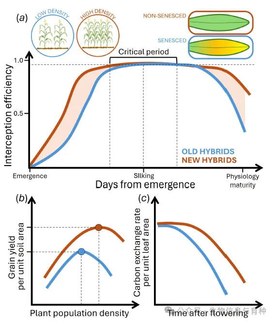 基于新杂交种的玉米作物因对增加的种植密度的更强耐受性和延迟衰老过程而实现更高的光能利用效率。