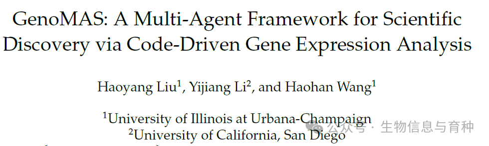 2025年7月,伊利诺伊大学香槟分校和加州大学圣地亚哥分校的研究团队在预印本平台arXiv发表了题为GenoMAS: A Multi-Agent Framework for Scientific Discovery via Code-Driven Gene Expression Analysis的论文。该研究提出了一种基于多智能体的框架GenoMAS,用于自动化基因表达分析。GenoMAS通过六种专门化的大型语言模型(LLM)智能体协作,动态生成、验证和执行代码,显著提升了分析效率和准确性。在GenoTEX基准测试中,其性能超越现有最佳方法,数据预处理和基因识别任务分别提升10.61%和16.85%。这一成果为生物医学研究提供了高效、可靠的分析工具,推动了科学发现自动化的前沿发展。
