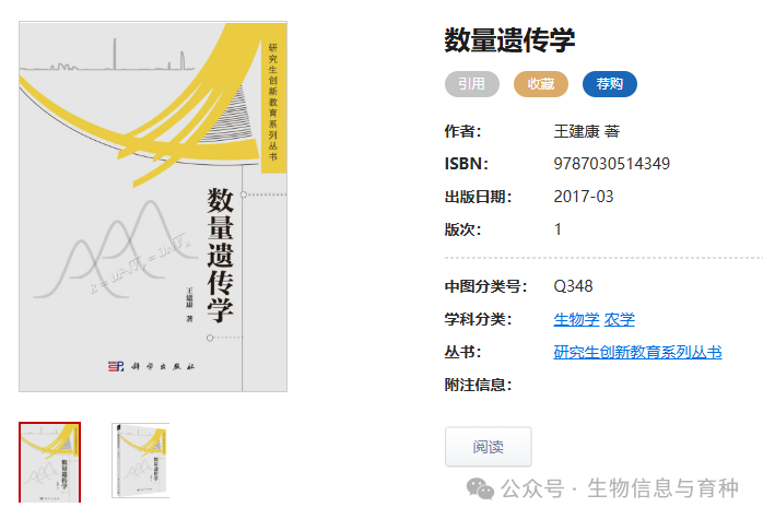数量遗传学是智能育种必学课程,这里推荐一本由中国农科院作物科学研究所王建康老师主编的教材。