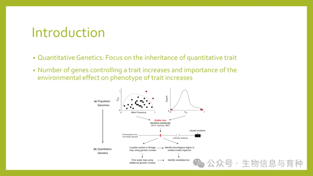 - • 数量遗传学研究数量性状(如身高、产量等连续变异性状)的遗传规律。