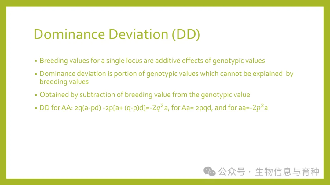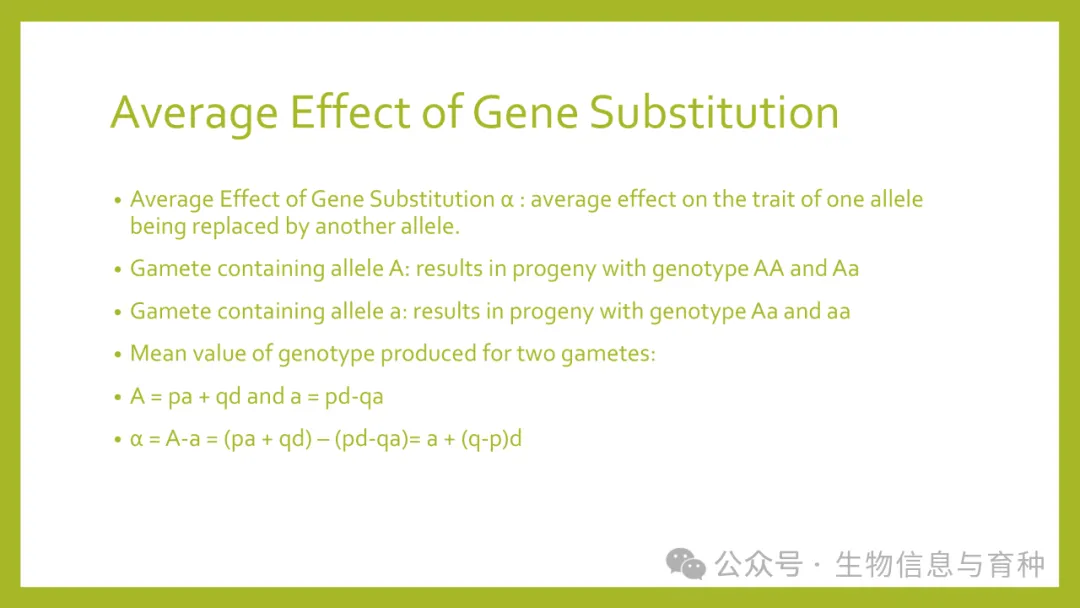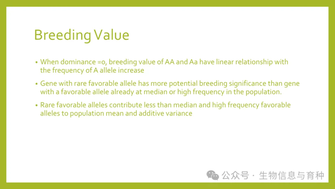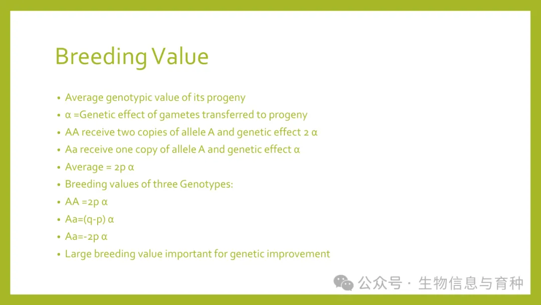 表示一个等位基因被另一个替代时对性状的平均影响。 - 2. 育种值(Breeding Value)