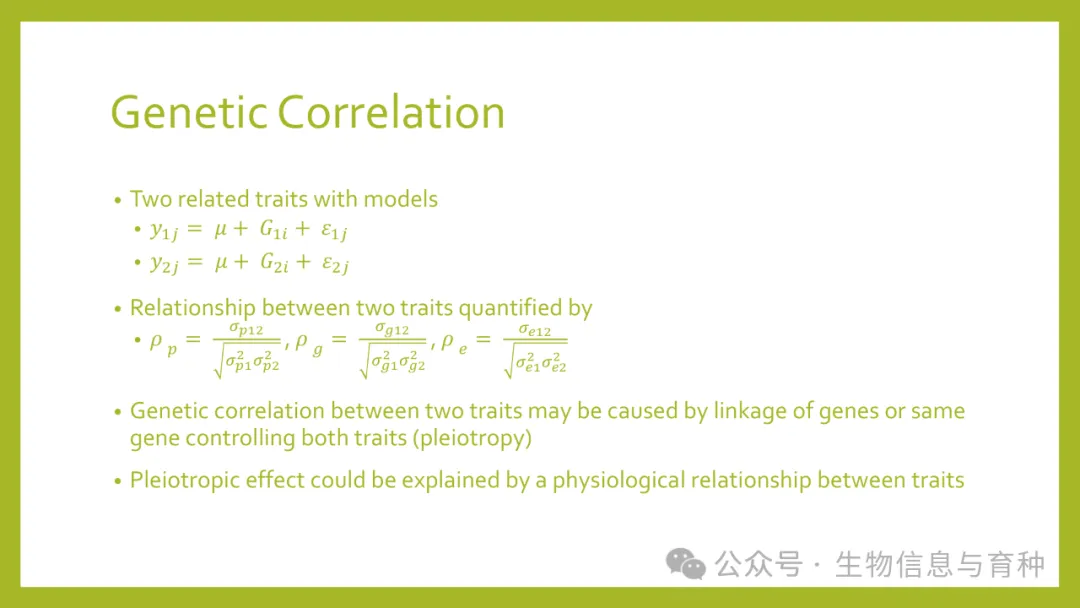- • 需区分遗传相关与环境相关,以指导多性状育种。