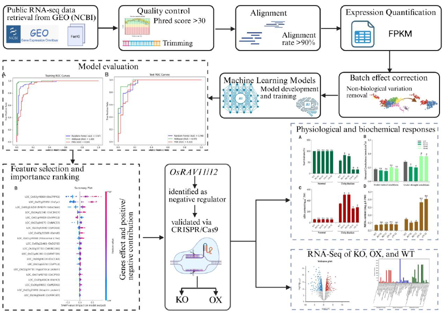 - • 研究意义:本研究结合机器学习与功能基因组学,旨在高效筛选并验证调控水稻干旱响应的关键转录因子,为耐旱育种提供新靶点。