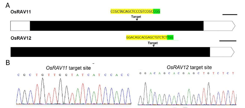 - • 利用CRISPR/Cas9构建 OsRAV11/12 的双基因敲除(KO)突变体。