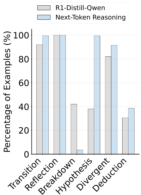 通过关键词统计(图5),RPT模型展现出与传统问题解决模式不同的推理特征: