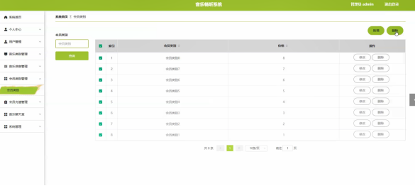 管理员点击会员类别管理;在会员类别管理页面对会员类别、价格等信息,进行查询或新增、删除会员类别等操作;如图5-11所示。