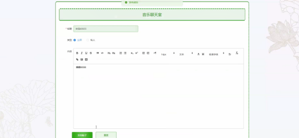音乐聊天室:用户通过音乐聊天室页面填写标题、类型、内容,进行发布帖子,与其他用户可以在下方发表评论,可依关键字搜索帖子,如图5-4所示。