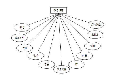 通过对音乐畅听系统的主要功能信息进行规划并分为若干功能实体信息,实体信息将利用E-R图加以表示,本平台的重要功能实体图如图4-2、图4-3、图4-4、图4-5所示。
