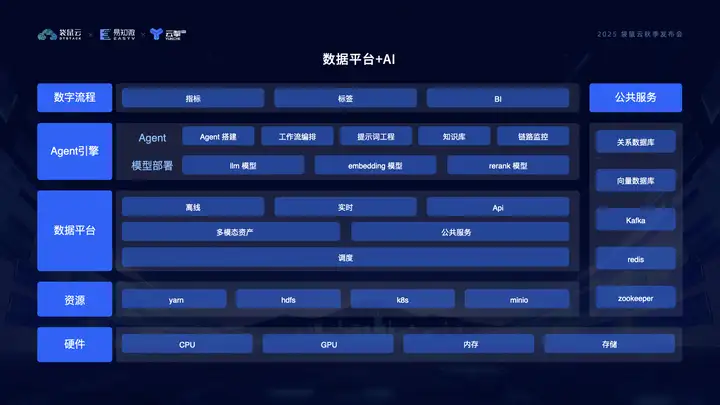 2025年10月21日,袋鼠云成功举办了以“数据筑基、智能跃迁“为主题的秋季发布会,详细介绍了多模态数据中台、空间智能引擎等一系列战略级产品与行业解决方案,全面展示了袋鼠云在技术融合、品牌升级与战略定位上的全新突破。